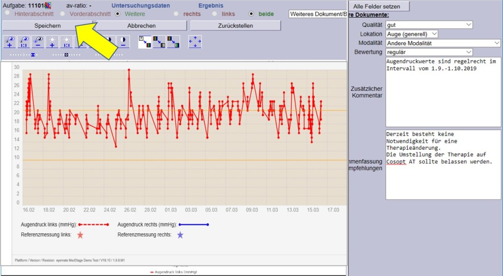 Optional: Telemedizinische Befundung der Augendruckwerte mit MedStage-Core