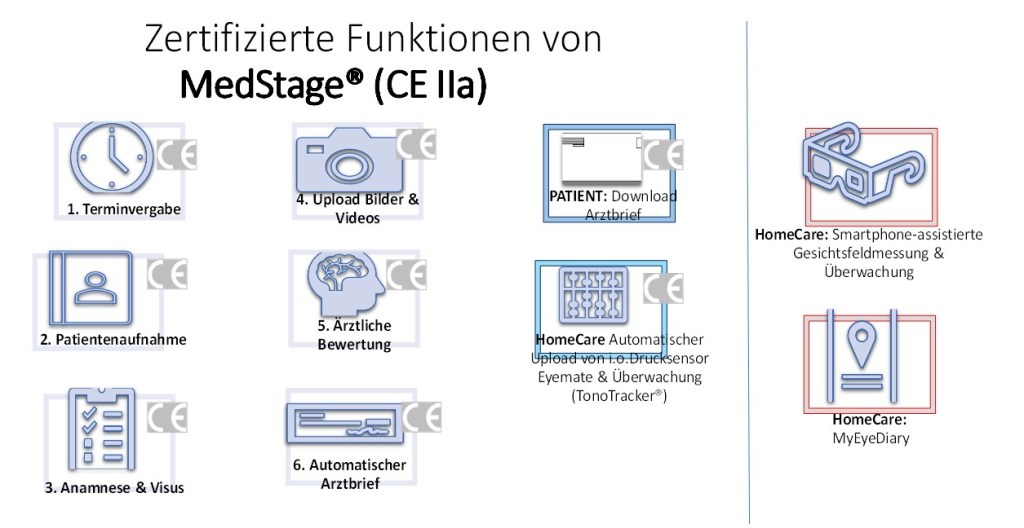 • Ausserhalb der DiGA-Anwendung: Funktionalität zur ärztlichen Beratung und Diagnosestellung im Bereich der Augenheilkunde (Funktionalität MedStage®-Core).