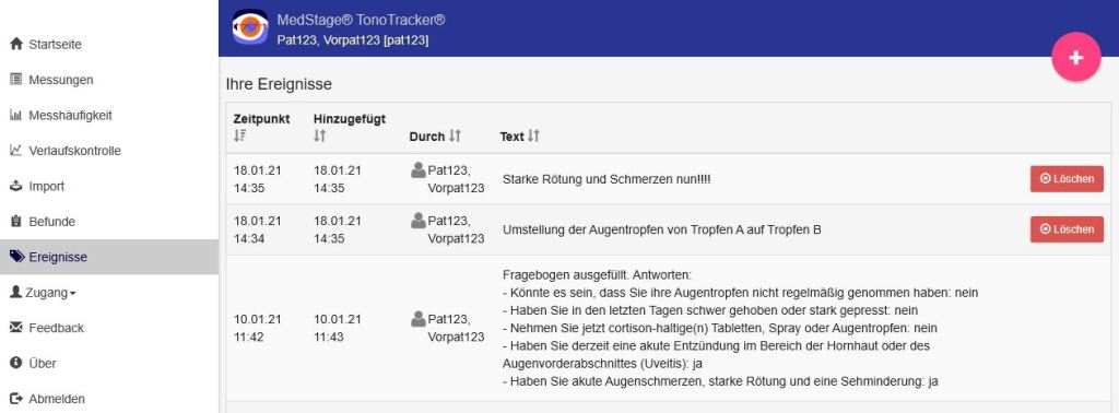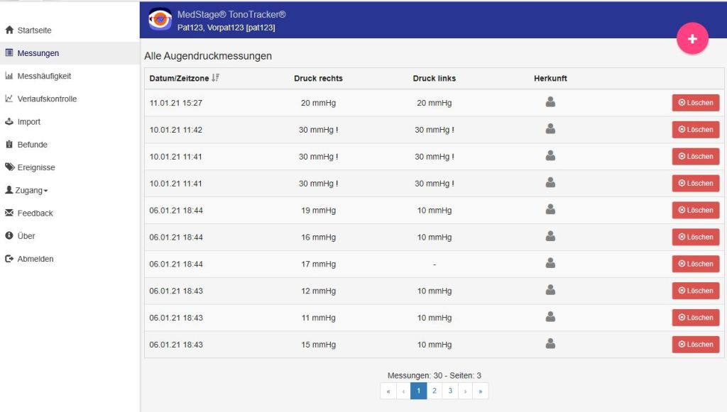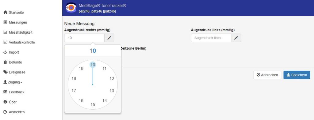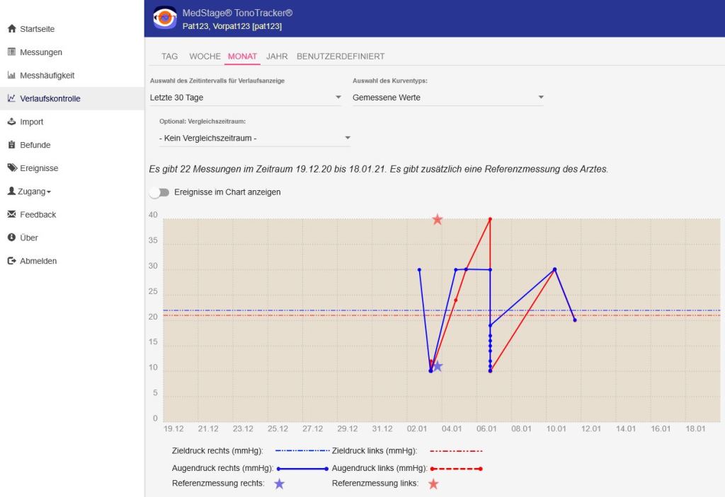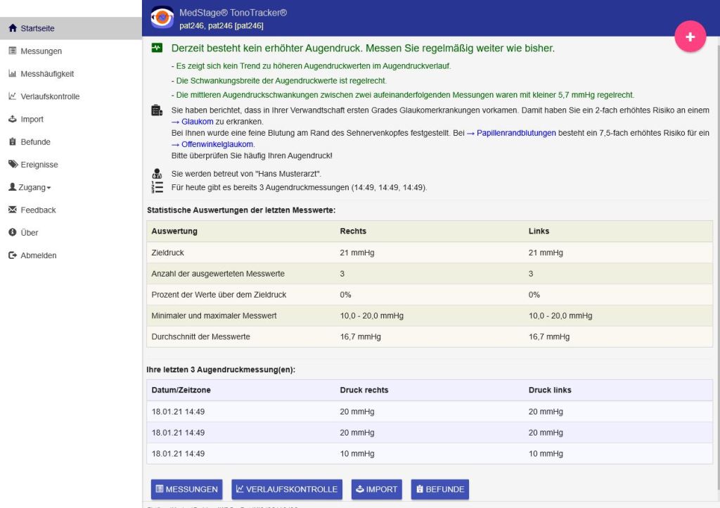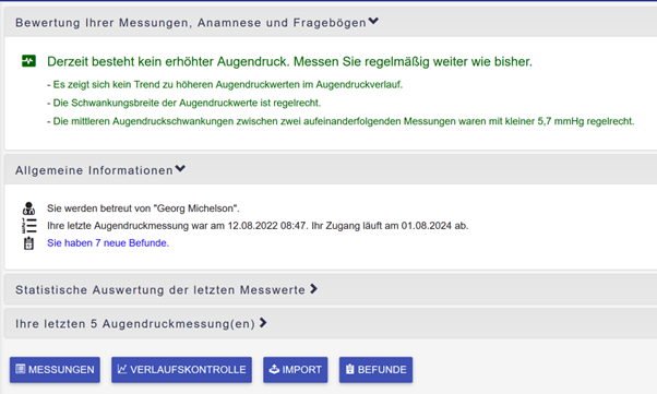 - Augendruck-Upload durch Patient mit automatischer Analyse des Augendrucks