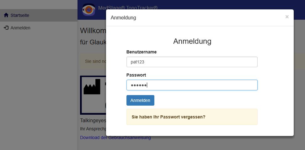Patienten, die ein Rezept für die SmartTonoTracker® verschrieben bekommen haben, aber vom verschreibenden Arzt kein Login und kein Passwort bekommen haben, können sich beim Tele-Ophthalmologischen Institut unter https://teleoph.de anmelden, um das Login und initiale Passwort für den SmartTonoTracker® zu bekommen.