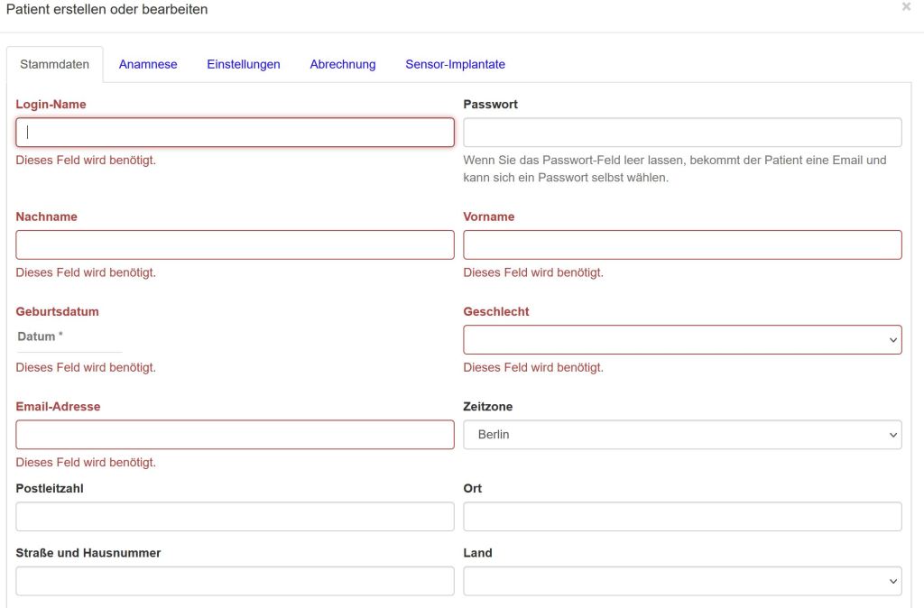 - manuelle Eintragung von Druckwerten von Patient